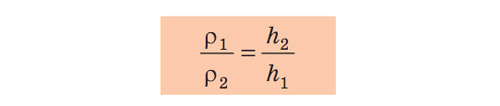 Наступна властивість сполучених посудин: У відкритих сполучених посудинах стовпчик нерухомої рідини з меншою густиною буде вищим, ніж стовпчик нерухомої рідини з більшою густиною. Відношення висот стовпчиків рідин є оберненим відношенню їхніх густин: