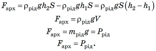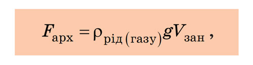 На тіло, що перебуває в рідині або газі, діє виштовхувальна (архімедова) сила.