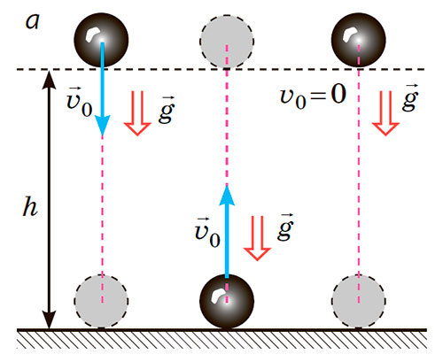 Рух тіла, кинутого вертикально вгору або вниз, — це рівноприскорений прямолінійний рух із прискоренням, що дорівнює прискоренню вільного падіння: a = g.