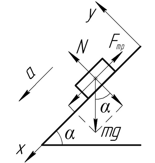 2.Знайдіть проекції на вісь OX та OY сили тяжіння mg, яка діє на тіло масою m, що рухається чи перебуває в спокої на похилій площині з кутом нахилу α.