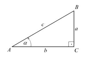 1. Запишіть формули для обчислення синуса та косинуса кута α в поданому на малюнку прямокутному трикутнику.