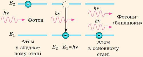 Випромінювання, що виникає внаслідок спонтанного переходу атомів у стан із нижчим рівнем енергії, називають спонтанним випромінюванням.