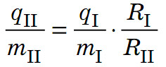 9. Обчисліть питомий заряд невідомої частинки ІІ за формулою: