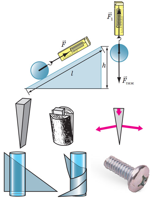 Похила площина – наступний простий механізм, який є незамінним, коли треба підняти вантаж. Чим пологіший ухил площини, тим легше виконати цю роботу. Різновидом похилої площини є клин та гвинт. Вони можуть змінювати напрям та значення прикладеної сили.