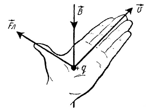 Отже, долоня повинна бути розкрита, чотири пальці дивляться вперед, великий палець відігнутий в сторону. Кут між ними становить 90 градусів. Тепер необхідно представити, що магнітний потік являє собою стрілу, яка впивається в долоню з внутрішньої сторони і виходить з протилежної, пронизуючи її наскрізь. Пальці при цьому дивляться туди ж, куди летить уявна частка (позитивно заряджена). В такому випадку великий палець покаже, куди вона відхилиться.