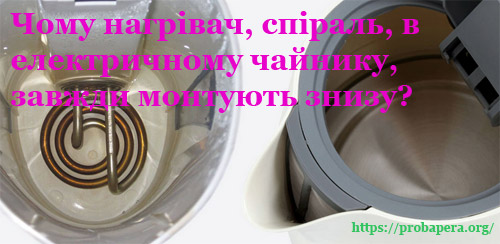 3.Чому нагрівач, спіраль, в електричному чайнику, завжди монтують знизу?