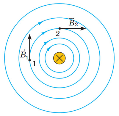 Навколо провідника зі струмом існує магнітне поле. Магнітна індукція поля, створеного струмом, зменшується зі збільшенням відстані від провідника та збільшується зі збільшенням сили струму в провіднику.