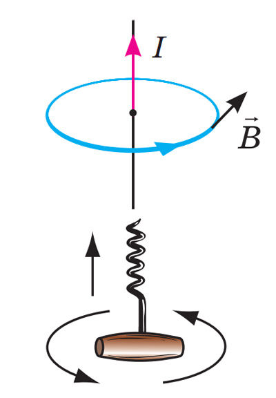 Якщо вкручувати свердлик за напрямком струму в провіднику, то напрямок обертання ручки свердлика вкаже напрямок ліній магнітного поля струму.
