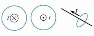 На малюнку зображені лінії магнітної індукції навколо зігнутого кільцем провідника. Вкажіть напрямок струму в кільці.