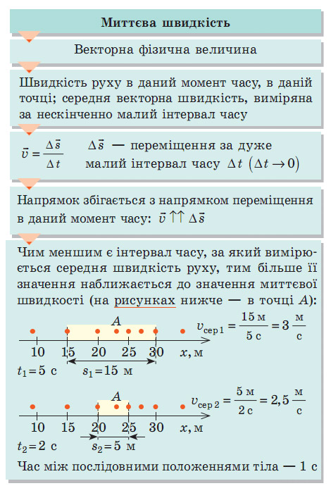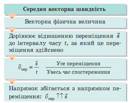 Швидкість руху. Середня та миттєва швидкості. Закони додавання переміщень і швидкостей
