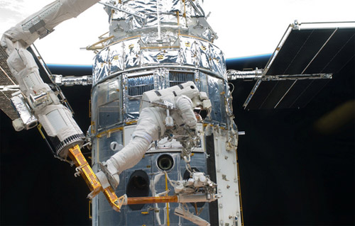 На фото та відео ви можете побачити, як ремонтують телескоп Хаббл в космосі на орбіті Землі, який рухається зі швидкість 7500 м/с (27000 км/год). Чому космонавти не відчувають цю величезну швидкість?