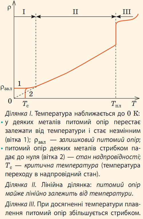 У разі зниження температури деяких металів до температур, близьких до абсолютного нуля, їхній опір стрибком падає до нуля. Це явище називають надпровідністю.