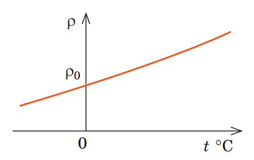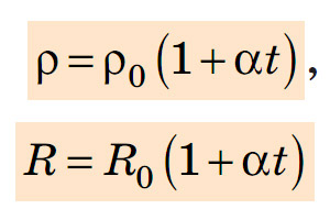 , де ρ0, R0 — відповідно питомий опір і опір провідника за температури 0 °С; ρ, R — відповідно питомий опір і опір провідника за температури t, α — температурний коефіцієнт електричного опору.