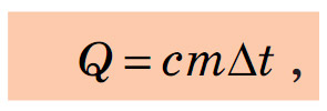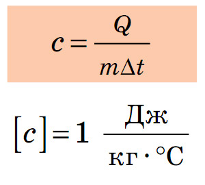 де Q — кількість теплоти; m — маса речовини; ∆t — зміна температури; c — коефіцієнт пропорційності, що є характеристикою речовини і називається питомою теплоємністю речовини.