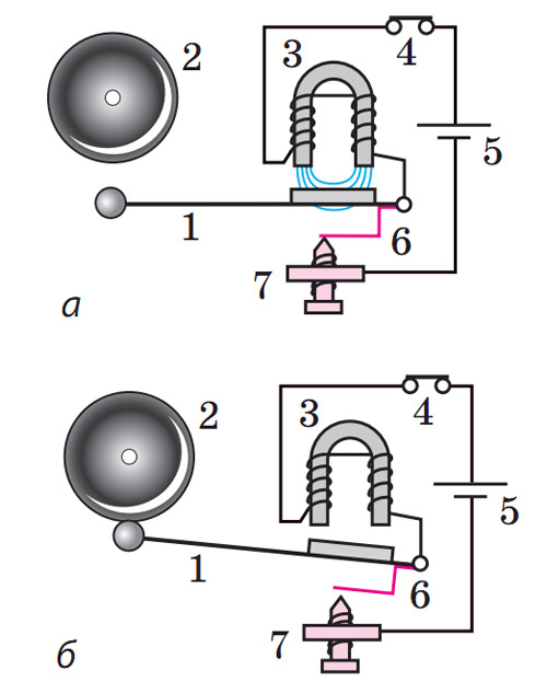 Скориставшись малюнком, спробуйте розібратися, як працює електричний дзвінок.