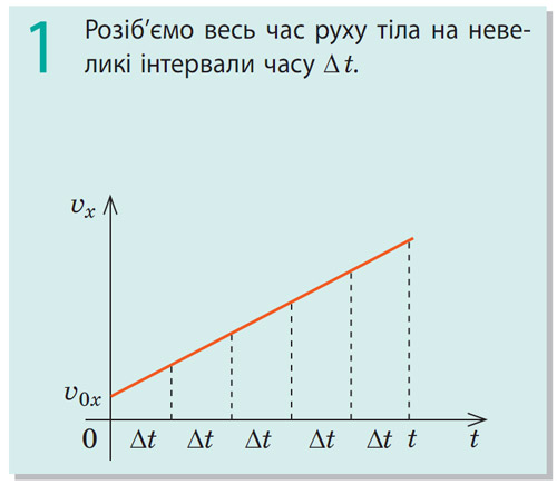 Розглянемо приклад рівноприскореного руху для виведення формули переміщення:
