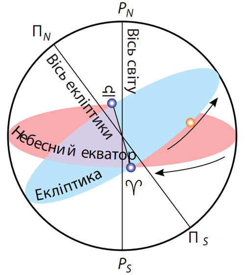 Точку небесного екватора, через яку Сонце під час свого руху по екліптиці переходить з Південної півкулі неба в Північну, називають точкою весняного рівнодення.