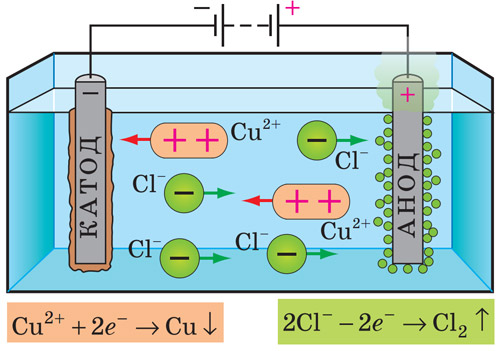 Процес виділення речовин на електродах, пов’язаний з окисно-відновними реакціями, які відбуваються на електродах під час проходження струму, називають електролізом.