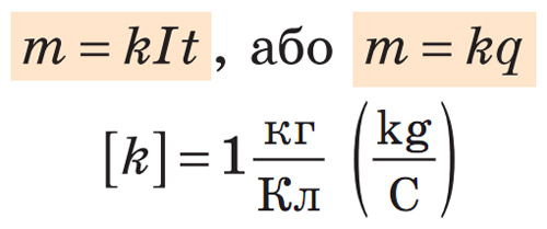 Маса речовини, яка виділяється на електроді під час електролізу, прямо пропорційна силі струму I та часу t його проходження через електроліт: