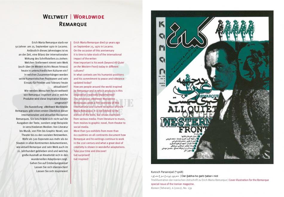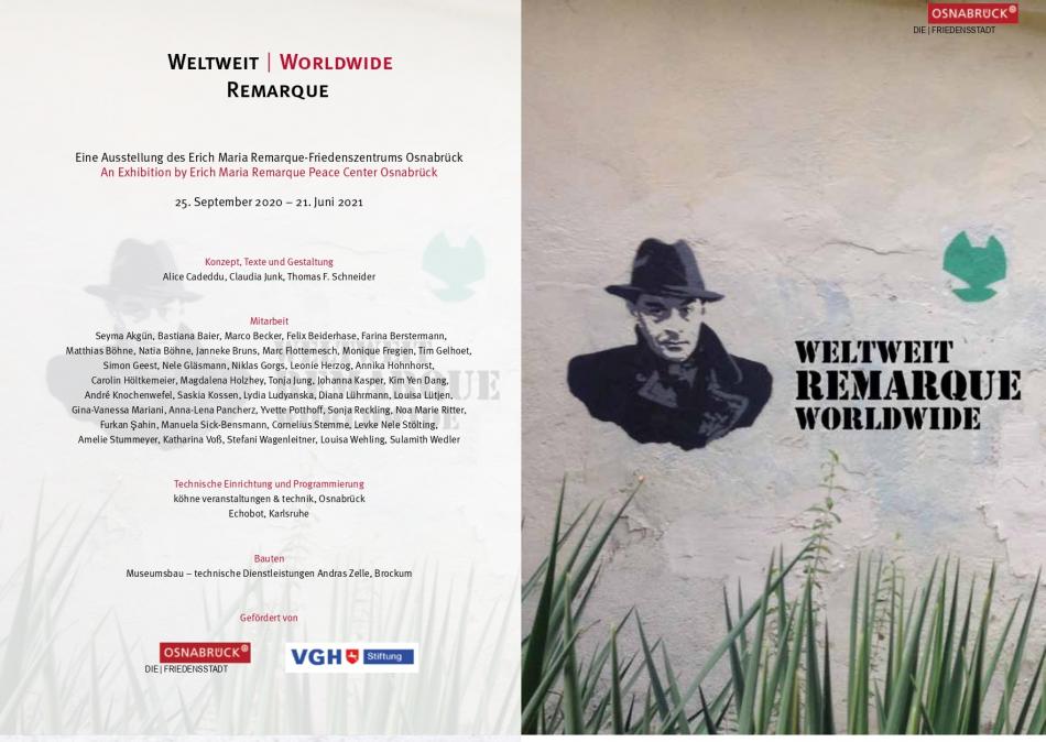 Weltweit Worldwide Remarque – «Всесвітній Ремарк» - таку назву має виставка, що відкривається 25 вересня 2020 року в Центрі миру Еріха Марії Ремарка в місті Оснабрюк (Німеччина)*.