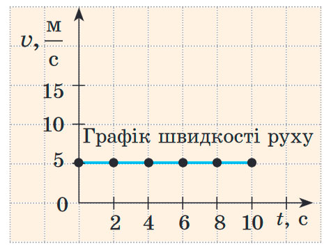 У разі рівномірного руху тіла графік швидкості руху — це відрізок прямої, паралельної осі часу.