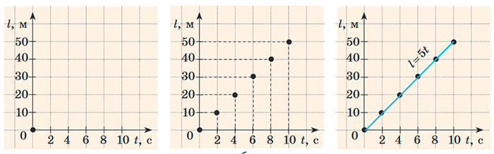 Будуємо графік залежності шляху від часу для рівномірного руху тіла