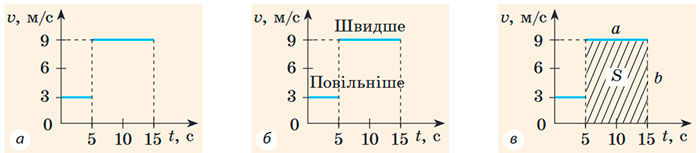 Для будь-якого руху числове значення шляху, який подолало тіло, дорівнює числовому значенню площі фігури під графіком швидкості руху цього тіла.