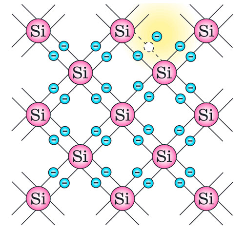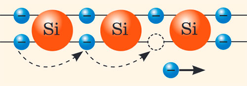 Для кращого розуміння провідності напівпровідників переглянемо анімації: кремній та власний напівпровідник.