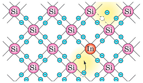 Для кращого розуміння принципу роботи донорних та акцепторних домішок, переглянемо анімацію: напівпровідники.