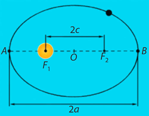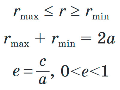 AF1 = rmin — у перигелії; BF1 = rmax — в афелії.