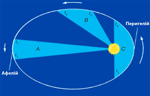 Радіус-вектор планети за однакові проміжки часу описує рівні площі.