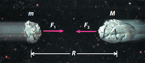 Будь-які два тіла з масами М і m притягуються із силою, величина якої пропорційна добутку їхніх мас та обернено пропорційна квадрату відстані між ними.
