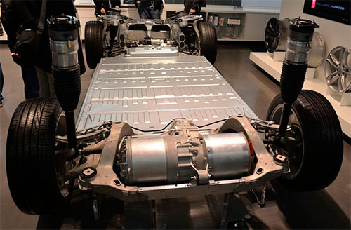 А ось шасі електрокара Tesla з електродвигунами.