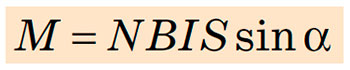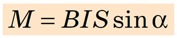 Момент сил Ампера, які діють на плоский замкнений контур, розташований в однорідному магнітному полі, дорівнює добутку модуля магнітної індукції поля, сили струму в контурі, площі контуру і синуса кута α між вектором магнітної індукції та нормаллю до площини контуру:
