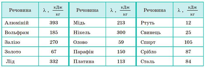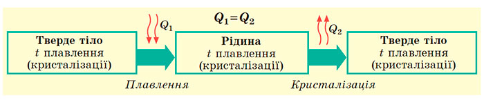 Кількість теплоти, яку необхідно витратити на плавлення певної маси речовини, дорівнює кількості теплоти, що виділяється під час кристалізації цієї речовини.