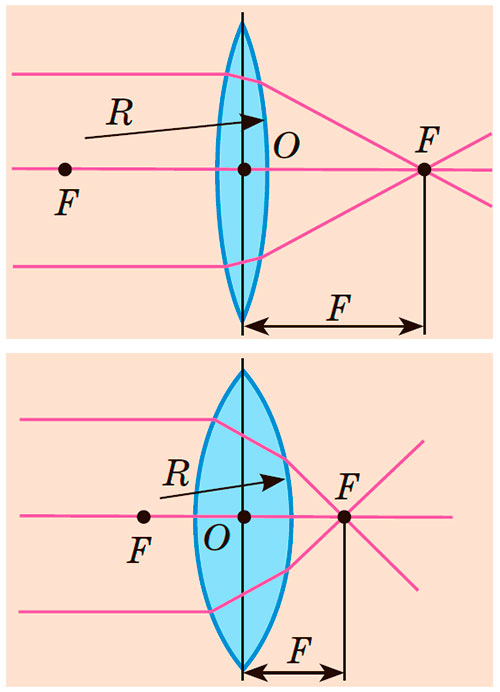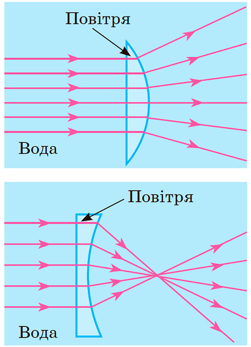 Якщо оптична густина матеріалу, з якого виготовлена лінза, більша за оптичну густину середовища, то опукла лінза збиратиме промені, а ввігнута лінза розсіюватиме промені та навпаки.