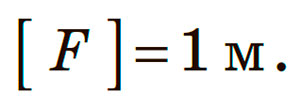 Фокусну відстань (як і фокус) позначають символом F. Одиниця фокусної відстані в СІ — метр: