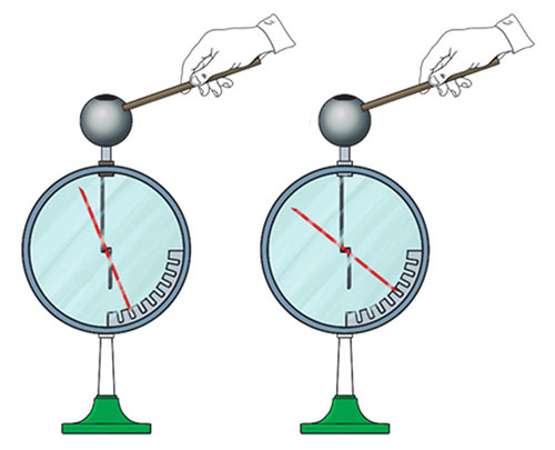Електроскопу передали позитивний заряд (рисунок а). Потім до нього піднесли іншу заряджену паличку (рисунок б). Визначте знак заряду палички.
