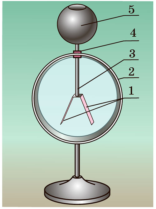 1 — індикатор (паперові смужки); 2 — металевий стрижень; 3 — корпус; 4 — діелектрик; 5 — кондуктор.
