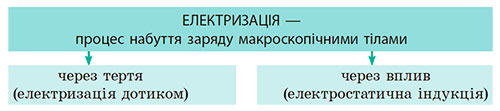 Опрацьовуємо очно або дистанційно параграф «Механізм електризації. Електроскоп» §21 за підручником «Фізика 8 клас, В. Г. Бар’яхтар, С. О. Довгий» або §22 та 26 «Електризація тіл. Закон збереження заряду», «Провідники, напівпровідники та діелектрики» за підручником «Фізика 8 клас, П. Ф. Пістун, В. В. Добровольський». Пишемо конспект, головне виділене нижче.