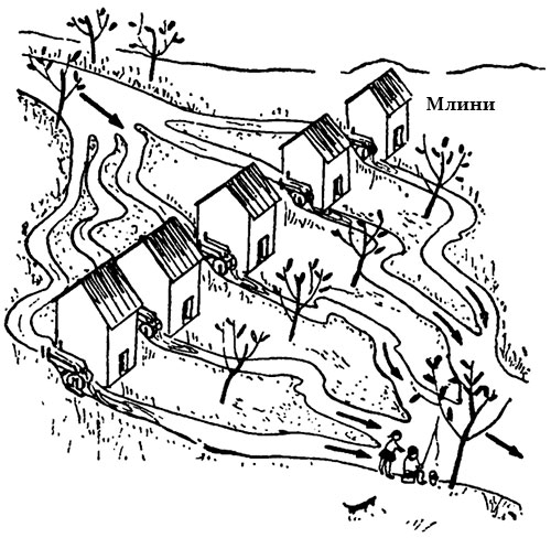 Удвічі більший водний потік може приводити в дію два таких млина. Величина водного потоку при цьому рівна 2.