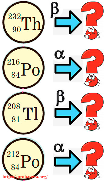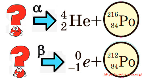 Маємо дві реакції: α- та β-розпаду. Відомі речовини, які утворилися під час цих перетворень. Знайдіть, які радіонукліди були до випромінювання α- та β-частинки.
