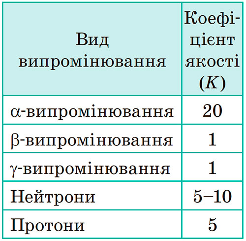 де D — поглинута доза; К — коефіцієнт якості.