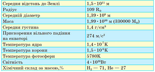 Увага! В підручнику помилка, не вірно вказані в таблиці характеристик температури ядра та корони.