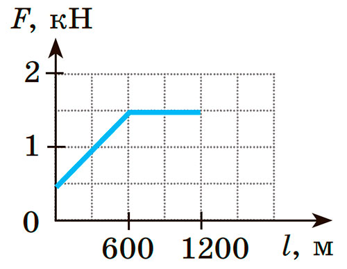 7. На графіку (рисунок) подано залежність сили тяги мотоцикла від шляху, який він долає за 2 хв руху. Визначте середню потужність двигуна мотоцикла.