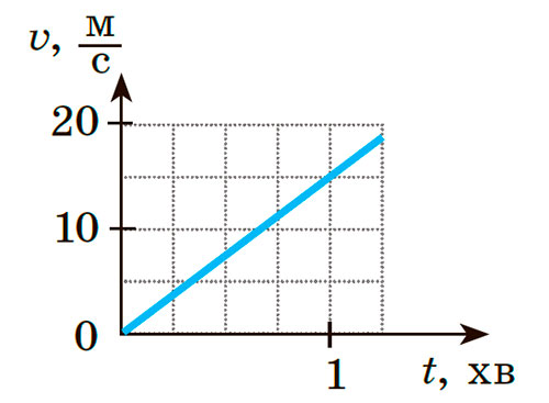8. На рисунку подано графік залежності швидкості руху вантажівки масою 4 т від часу. Визначте кінетичну енергію вантажівки через 15 с після початку спостереження.