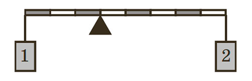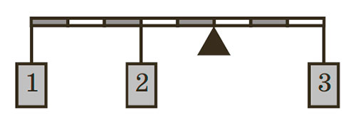 7. Маса вантажу 1 — 10 кг, вантажу 2 — 5 кг (рисунок). Визначте масу вантажу 3. З якою силою важіль тисне на опору?