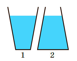 5. У дві посудини налили до одного рівня однакову рідину (рисунок). Порівняйте тиски та сили тисків на дно посудин. Сформулюйте висновок.