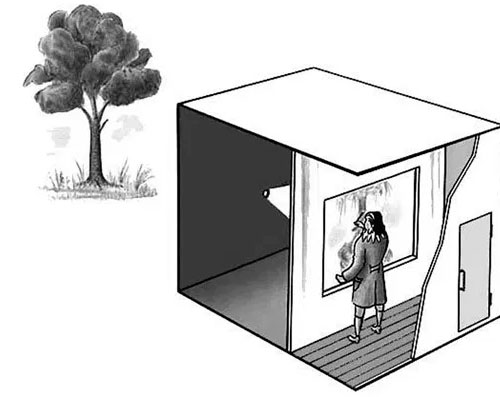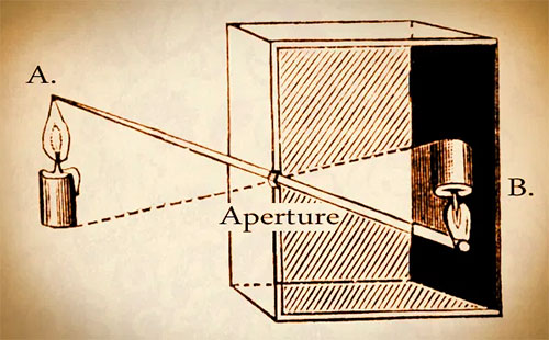 Камера-обскура – це прототип фотографічного апарату з одним малим отвором (діаметром порядку 0, 3-1, 0 мм), через який на протилежну стіну проектується перевернуте зменшене зображення предметів ззовні.