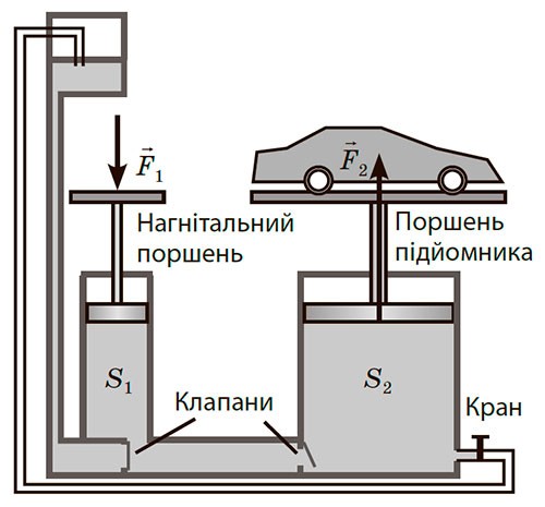 Чим більше різнитимуться між собою площі поршнів, тим більший виграш у силі будемо мати.